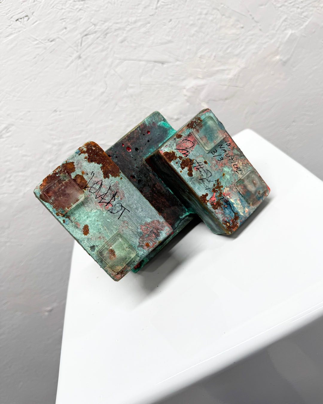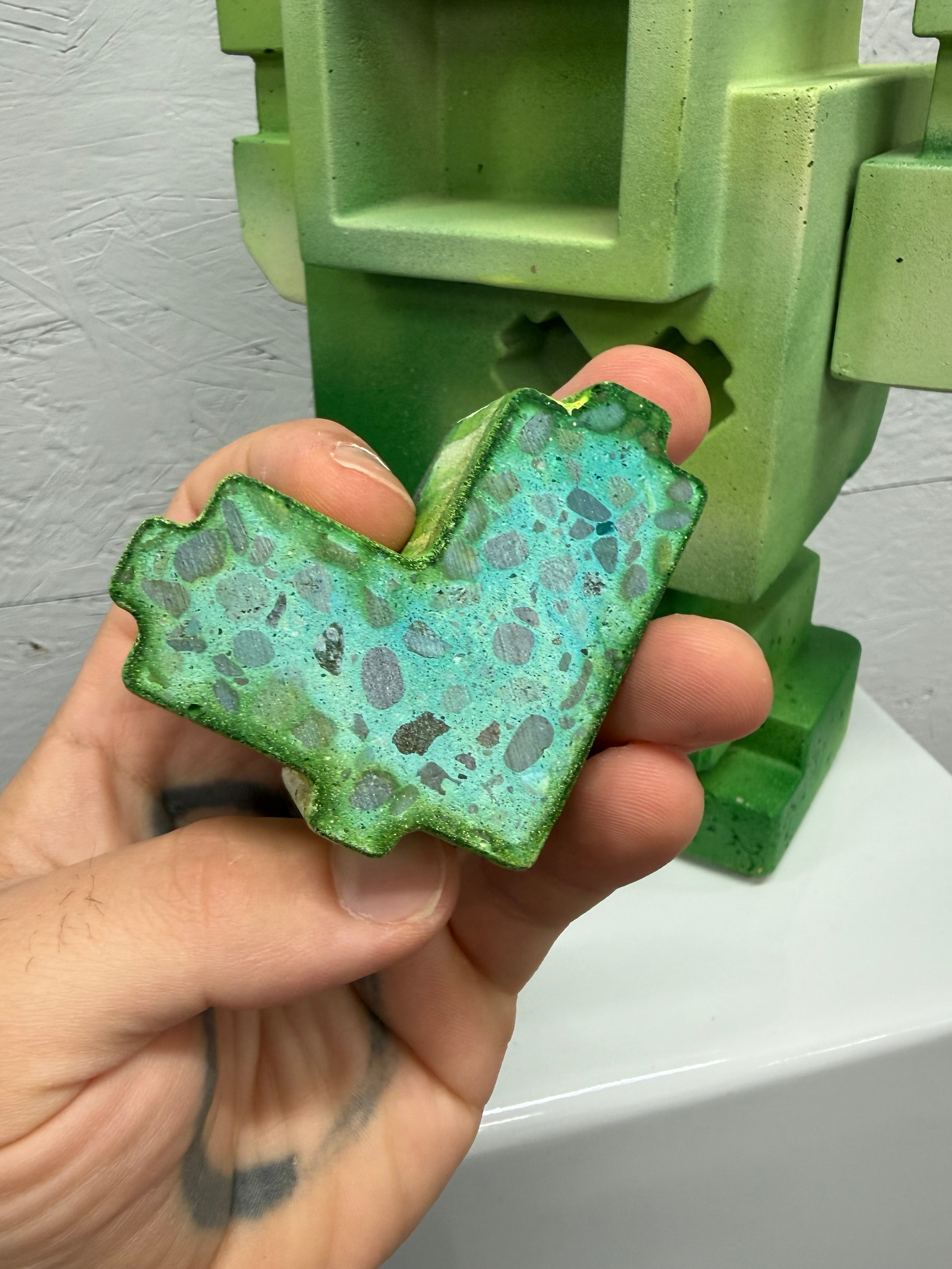 I.D AQUATIC 3/3 1ft Concrete Lovebot This 1/1 hand painted Concrete Lovebot Sculpture was created for my most recent solo exhibition titlesBorough of Ghosts.I cast and painted the solid concrete body,...